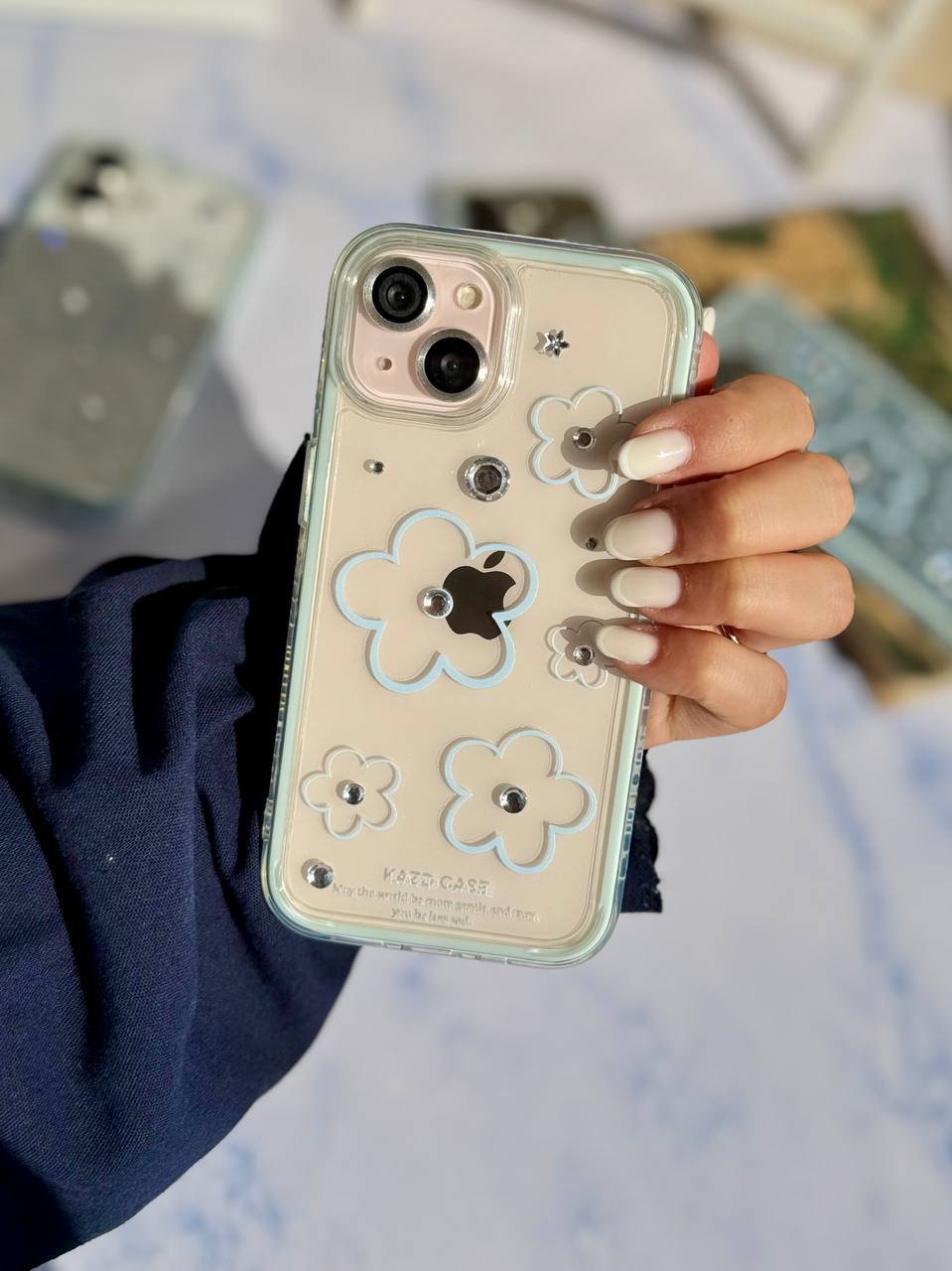 خانه فروشگاه قاب گوشی قاب آماده قاب گوشی گل آبی نگین دار