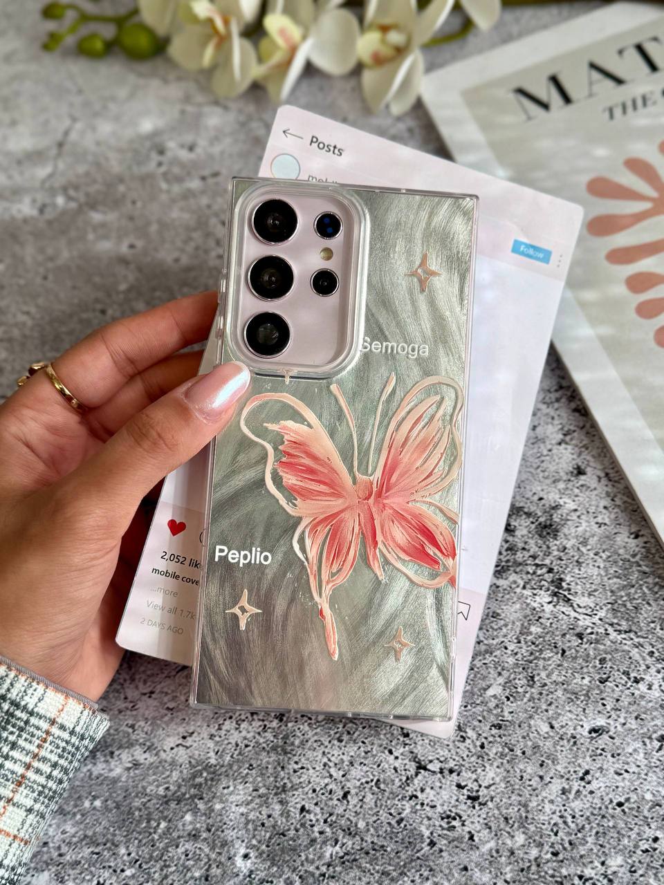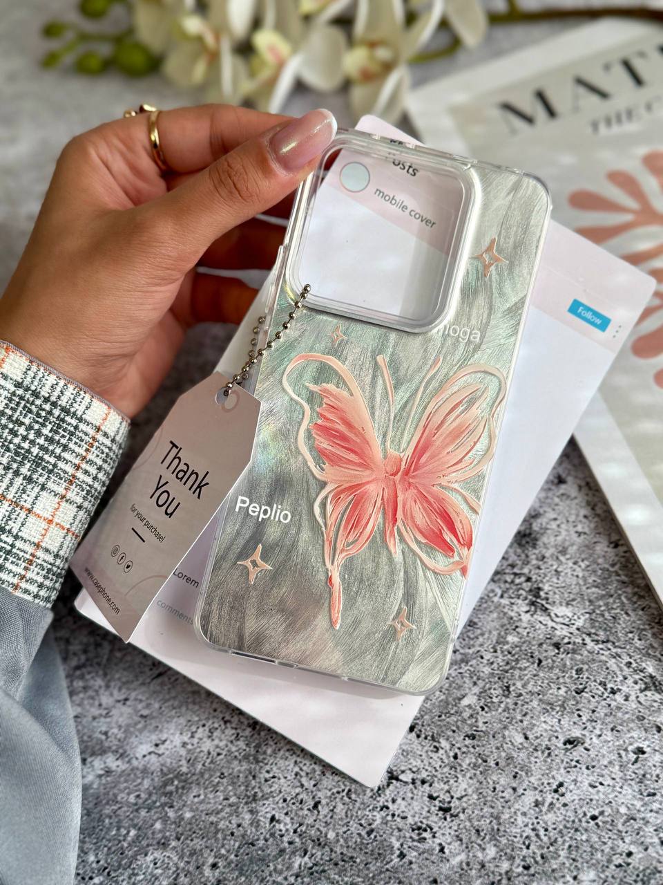 قاب گوشی پروانه رز فلای با آویز