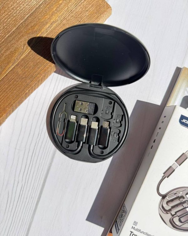پک مسافرتی کابلبرند JORREZIدو مدل : GT09 دایره ایGT10 استوانه ای••محتویات : • سوزن سیم کارت• کابل ۲۵ سانتی متری USB-C To USB-C• تبدیل USB-C to USB• تبدیل USB-C to Lightning• تبدیل USB-C to Micro USB••ویژگی ها :• طراحی مینیمال• اسلات سیم کارت و میکرو اس دی• کیفیت بالا• رنگ مشکی.
